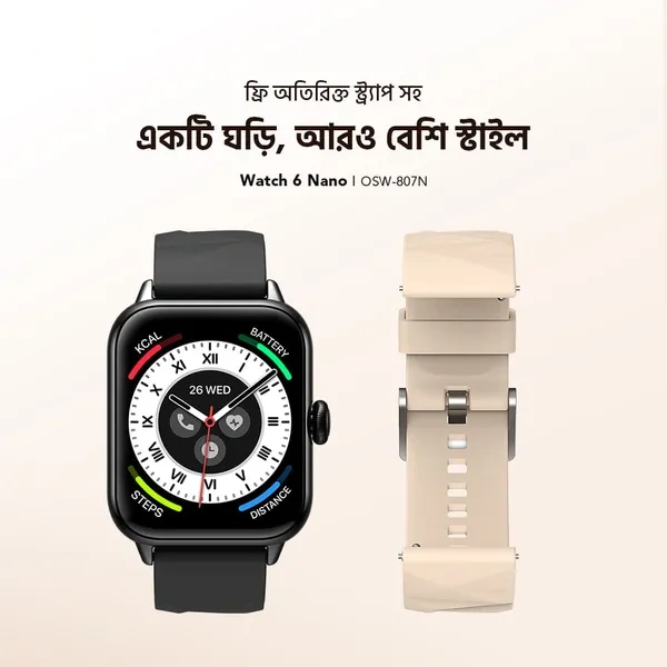 The Oraimo Watch 6 Nano comes with a standard manufacturer warranty, providing peace of mind and protection against defects in materials and workmanship. The warranty period and coverage may vary depending on the retailer and region. Check with the seller for specific warranty details when you buy Oraimo Watch 6 Nano Bluetooth Calling Smart Watch (OSW-807N) in Bangladesh.